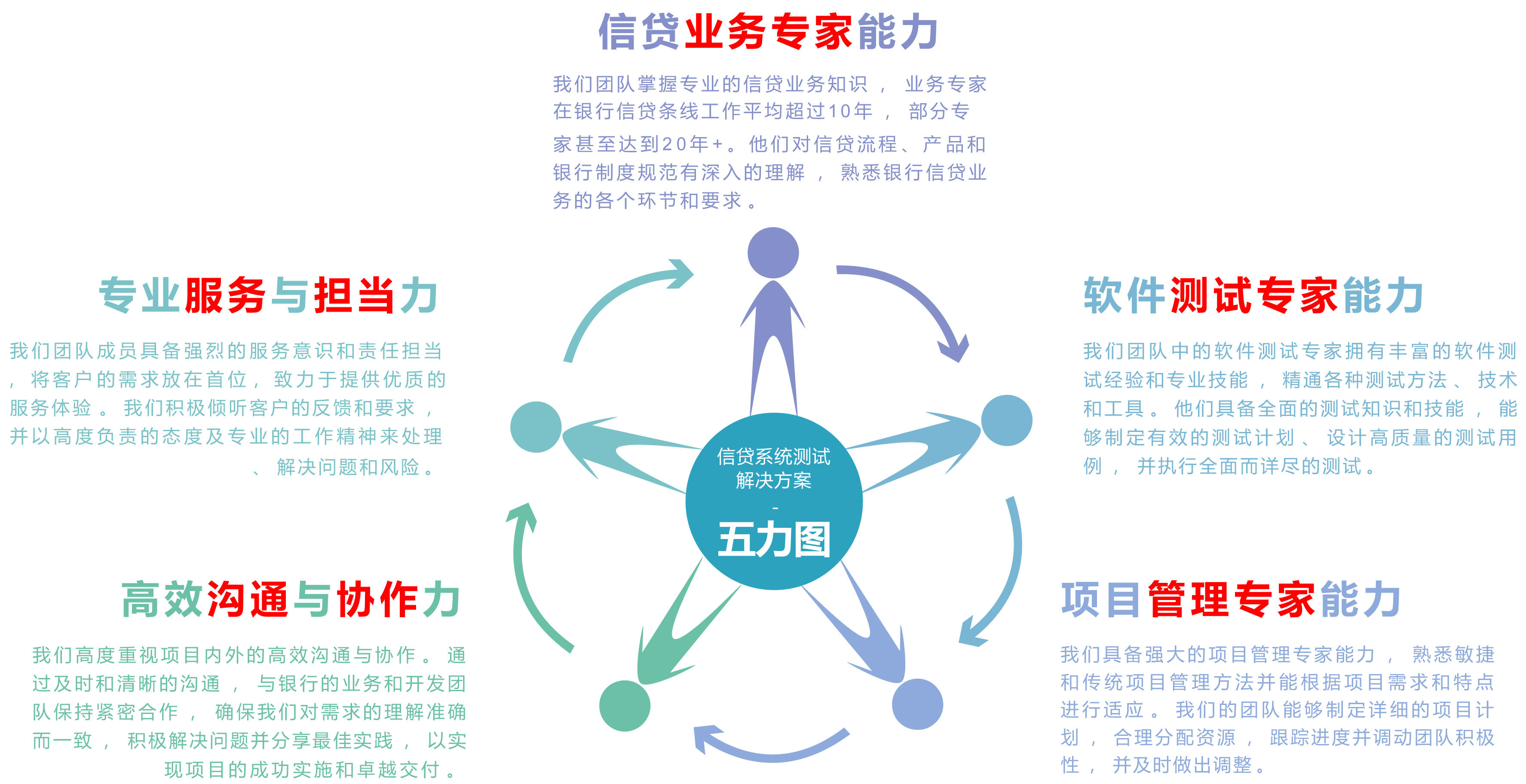 我们将以快速响应能力为导向,及时处理银行在信贷类系统测试过程中遇到的问题和需求变,以确保项目的成功实施、符合客户预期。