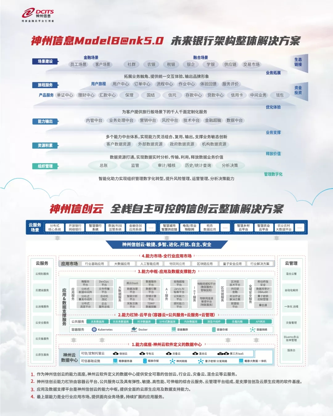ModelB@nk5.0和神州信创云是BB贝博艾弗森官网在2021技术年会上最新发布的前沿技术成果。旨在以大数据、人工智能、区块链等数字技术为驱动,赋能金融科技创新及各行业数字化转型,服务实体经济,践行数字中国使命。